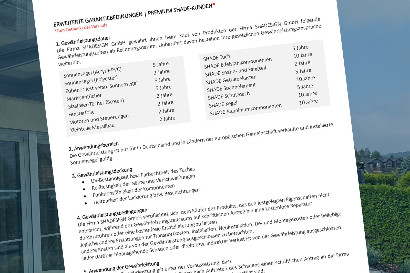 Als ausgewiesener SHADE TOP-PARTNER bieten wir Ihnen eine 5-JAHRES-GARANTIE.